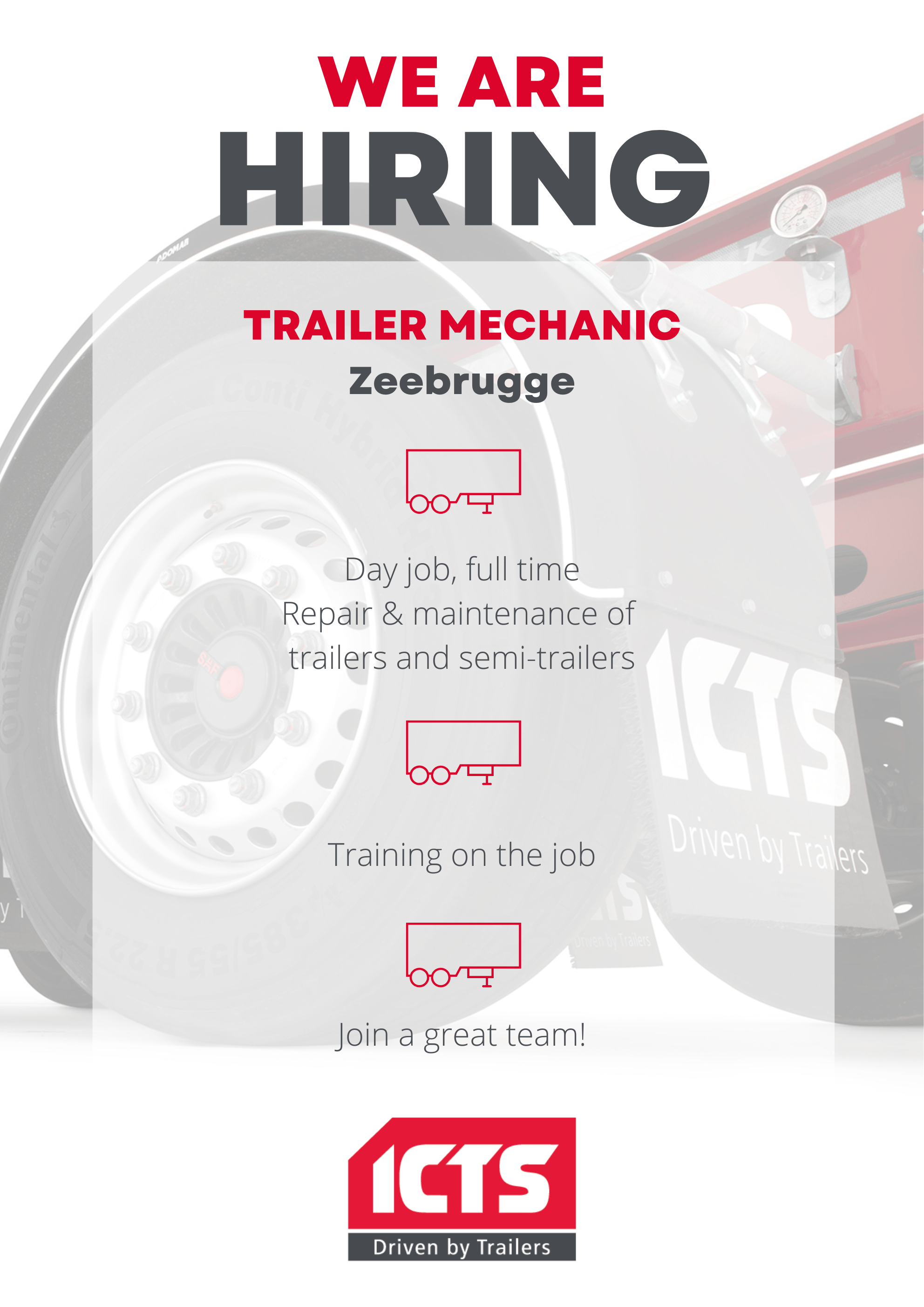 For our workshop in Zeebrugge we are looking for a trailer mechanic.